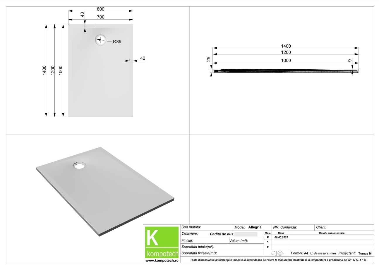 | Dimensiune | 700x1000x25mm, 700x1200x25mm, 800x800x25mm, 800x1000x25mm, 800x1200x25mm, 800x1400x25mm, 900x900x25mm, 900x1200x25mm |