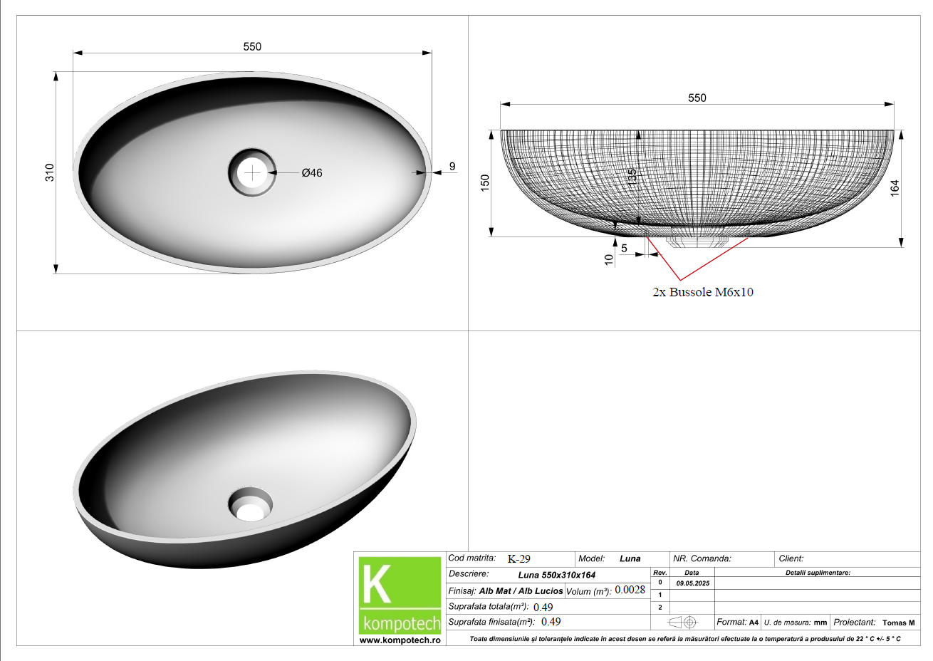 Explorează finețea modernă și rezistența deosebită a noului nostru lavoar tip bol, cu formă ovală. Conturat prin linii cursive și proporții echilibrate, acesta aduce un plus de eleganță și stil în orice baie. Fabricat din materiale premium, lavoarul este conceput să își păstreze calitatea și aspectul impecabil de-a lungul anilor, oferind fiabilitate și un design remarcabil.