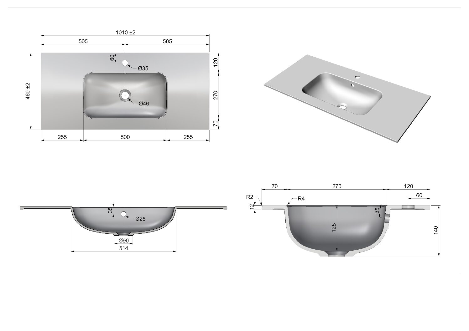 LAVOAR COMPOZIT, Model Eco Line, CUVĂ CENTRALĂ 1010 x 460 x 12