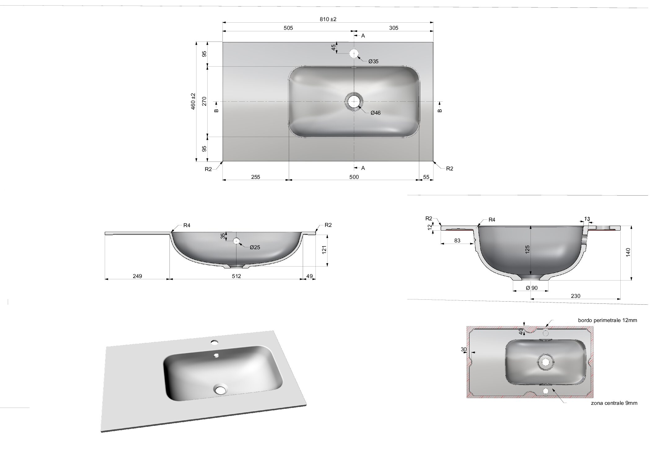 LAVOAR COMPOZIT, Model Eco Line, CUVĂ DREAPTA 810 x 460 x 12